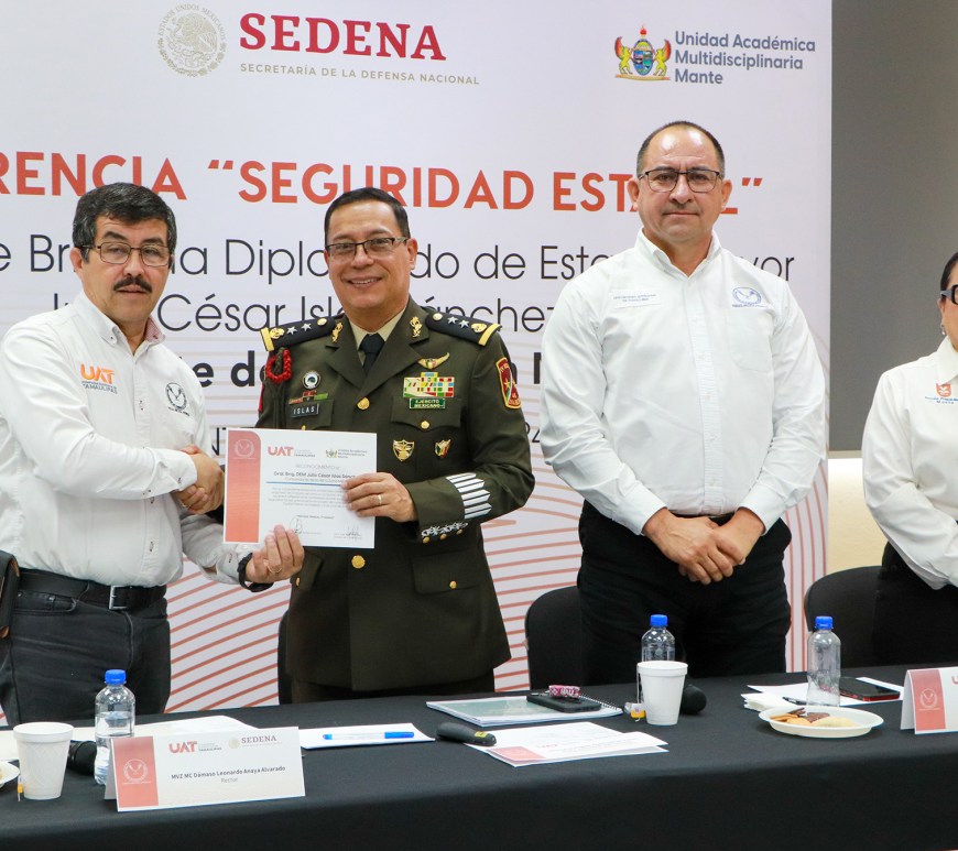 La Universidad Autónoma de Tamaulipas (UAT) organizó una conferencia sobre las funciones y el desempeño de la Secretaría de la Defensa Nacional (SEDENA), en el marco de la Reunión de Seguridad que se realizó en la Unidad Académica Multidisciplinaria Mante. El rector de la UAT, MVZ Dámaso Leonardo Anaya Alvarado, dio la bienvenida al general de brigada diplomado de Estado Mayor Julio César Islas Sánchez, … Continúa leyendo Imparten en la UAT conferencia sobre seguridad y protección ciudadana