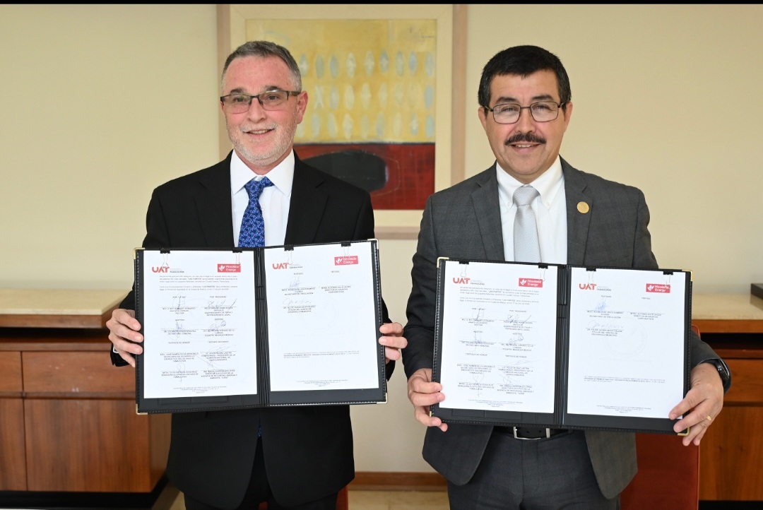La firma del acuerdo, celebrada este miércoles en la capital del país, fue presidida por el rector de la UAT, MVZ Dámaso Anaya Alvarado, y por el Ing. Stephane Henri Roger Drouaud, vicepresidente de TRION y representante legal de la empresa petrolera Woodside, teniendo como sede la residencia de la embajadora de Australia en México, Rachel Moseley, quien atestiguó el acto.