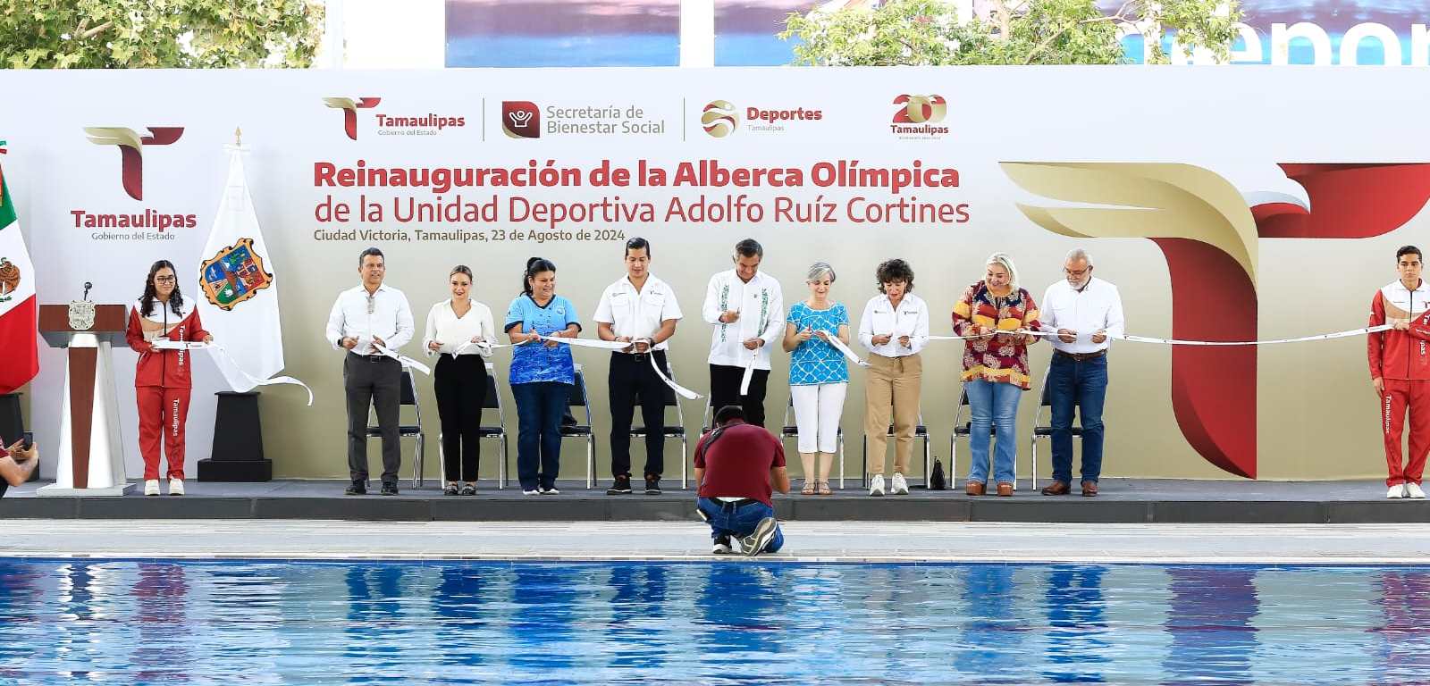 El gobernador de Tamaulipas afirmó que todas las instalaciones públicas son de la gente, al reinaugurar alberca olímpica y pista de tartán en la Unidad Adolfo Ruiz Cortines de Ciudad Victoria