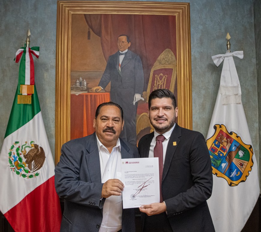 H. Matamoros, Tamaulipas.- El gobierno municipal de Matamoros continúa realizando la entrega de nombramientos a los hombres y mujeres que estarán al frente de las diversas direcciones municipales y ayudarán en la solidificación de una ciudad más unida y próspera. Fue el alcalde Alberto Granados Fávila quien enfatizó que se busca transformar a Matamoros con acciones sólidas y funcionarios comprometidos en el bienestar y crecimiento … Continúa leyendo Beto Granados realiza entrega de nombramientos a los funcionarios que estarán al frente de las Direcciones Municipales