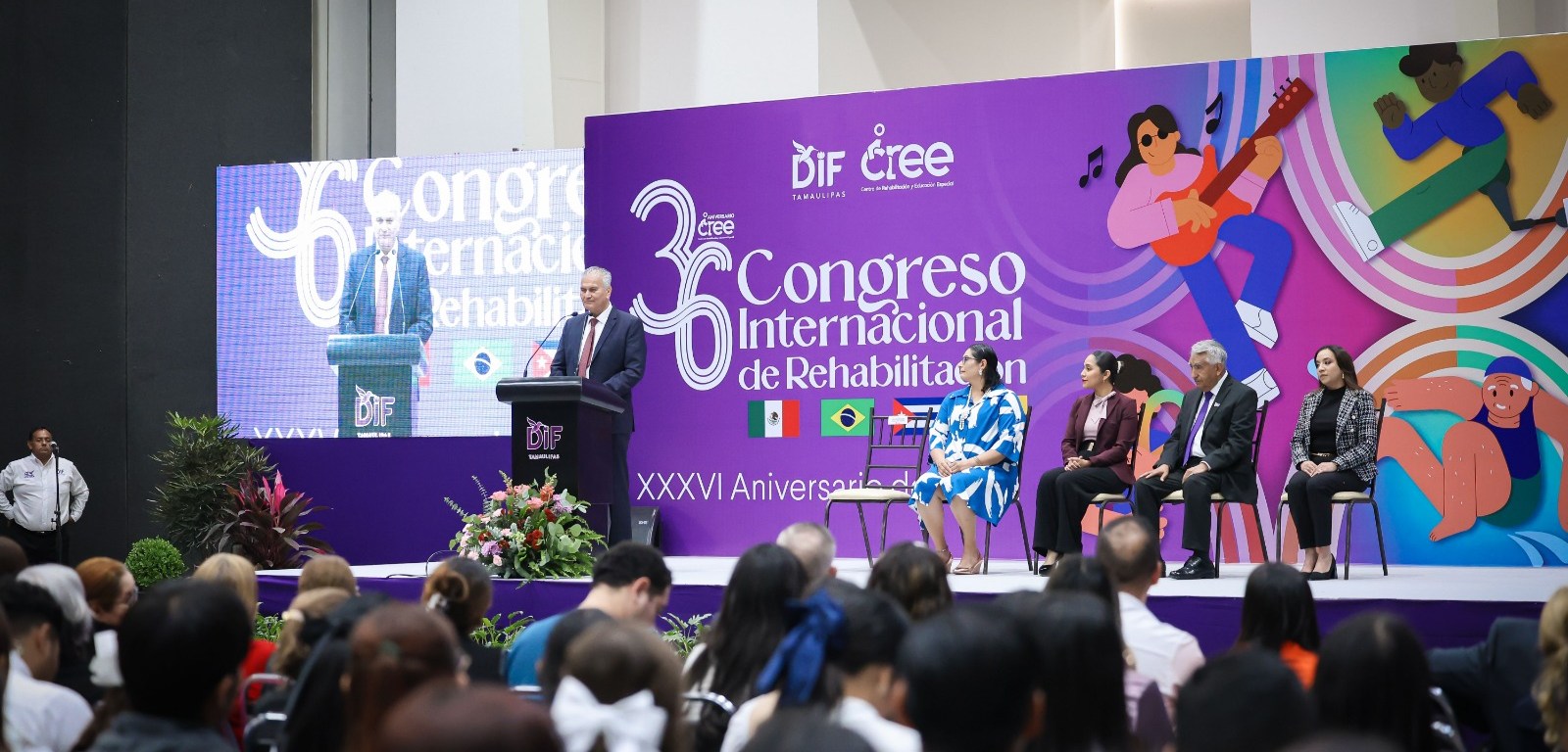 Ciudad Victoria, Tamaulipas.- En el marco de la conmemoración del 36 aniversario del Centro de Rehabilitación y Educación Especial (CREE), el Sistema DIF Tamaulipas, que preside la doctora María de Villarreal, llevó a cabo el primer Congreso Internacional de Rehabilitación, con la participación de especialistas latinoamericanos, además de profesionales y alumnos de diversas instituciones y escuelas de nivel superior del estado.