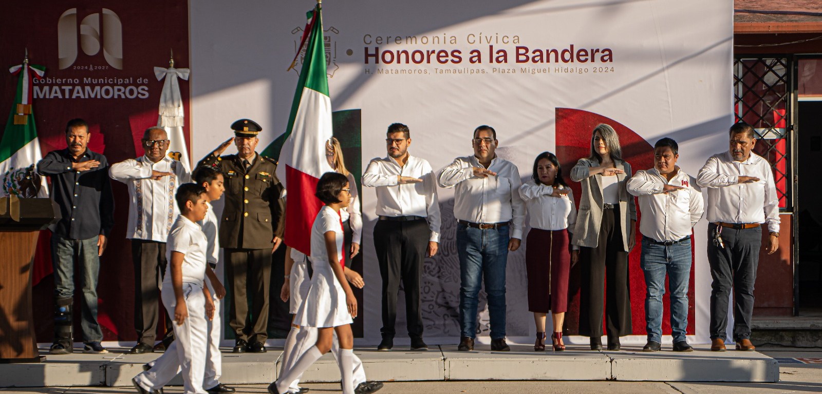 Matamoros, Tamaulipas. — Este lunes 25 de noviembre, en el marco de la Ceremonia Cívica de Honores a la Bandera, el alcalde José Alberto Granados Fávila anunció la construcción de un aula en la primaria José Doroteo Arango, ubicada en el fraccionamiento Pueblitos. Esta obra busca mejorar las condiciones educativas en un plantel que ha crecido al ritmo de su comunidad.