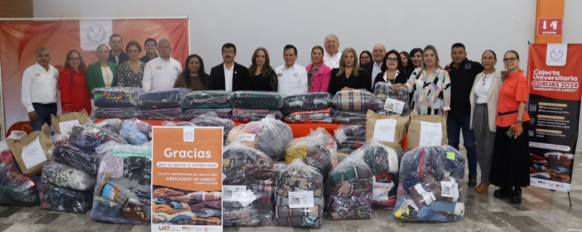 Mediante la Colecta Universitaria de Cobijas 2024 “Abrigando un Amigo”, la Universidad Autónoma de Tamaulipas (UAT) ha reunido la colaboración de todas sus dependencias académicas y administrativas para apoyar durante la temporada invernal a las familias más vulnerables en las distintas comunidades del estado.