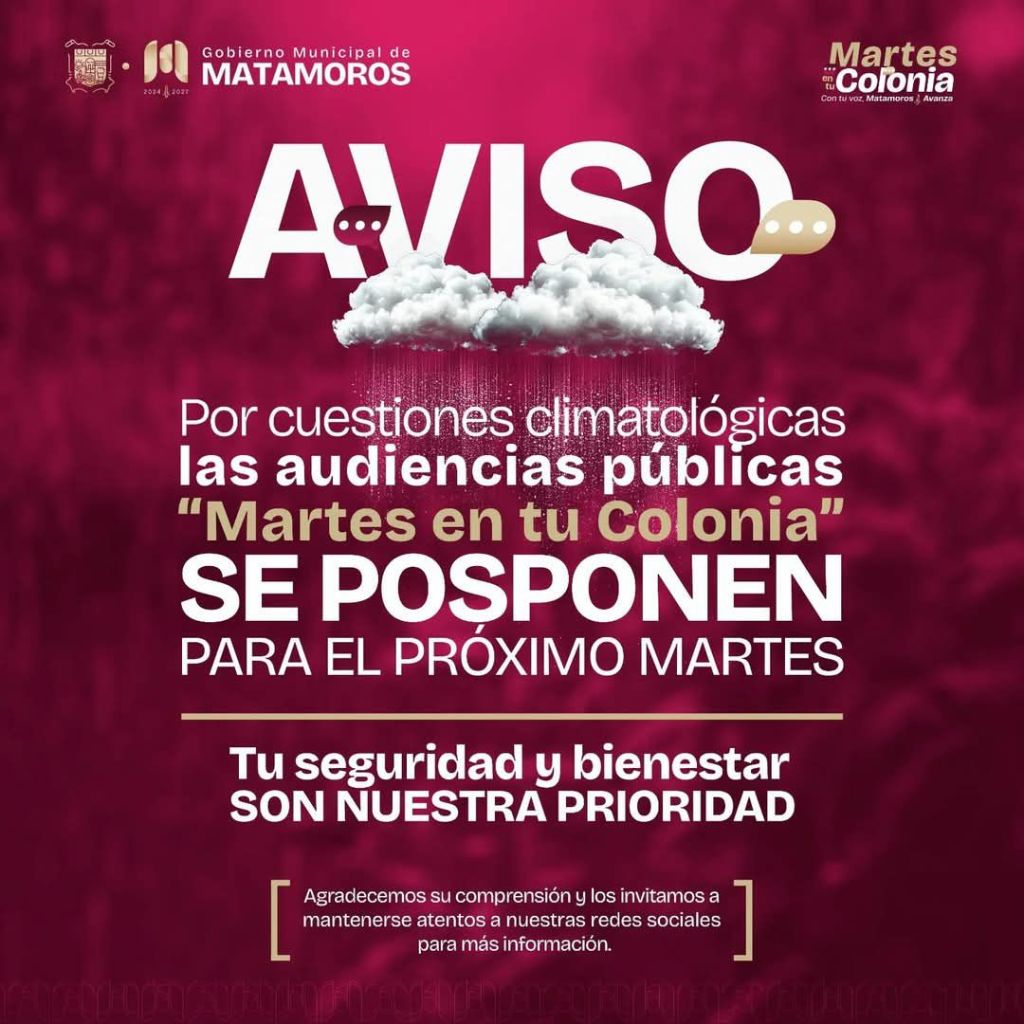 Sin categoríaSe suspende martes en tú colonia por mal clima El Ayuntamiento de Matamoros decidió suspender el programa Martes en Tu Colonia por mal clima hasta nuevo aviso. Compártelo: Compartir en X (Se abre en una ventana nueva) X Comparte en Facebook (Se abre en una ventana nueva) Facebook Me gusta Cargando... Relacionado
