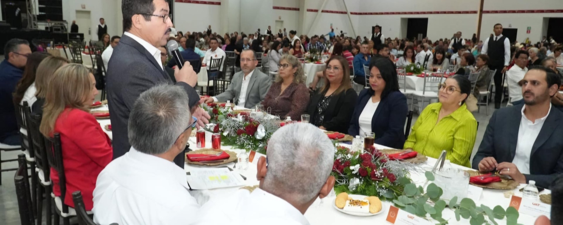 En este marco, el secretario general estatal del SUTUAT, José Luis Castañón Ramos, agradeció al rector por su apoyo a los trabajadores y por brindar estos espacios de convivencia que representan una oportunidad para reflexionar sobre la importancia de los valores humanos y el entorno familiar, además de poner en perspectiva el esfuerzo realizado a lo largo del año.