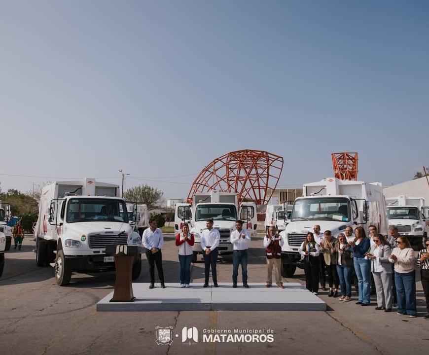 Entrega alcalde Alberto Granados nuevos camiones compactadores para reforzar limpieza pública en Matamoros