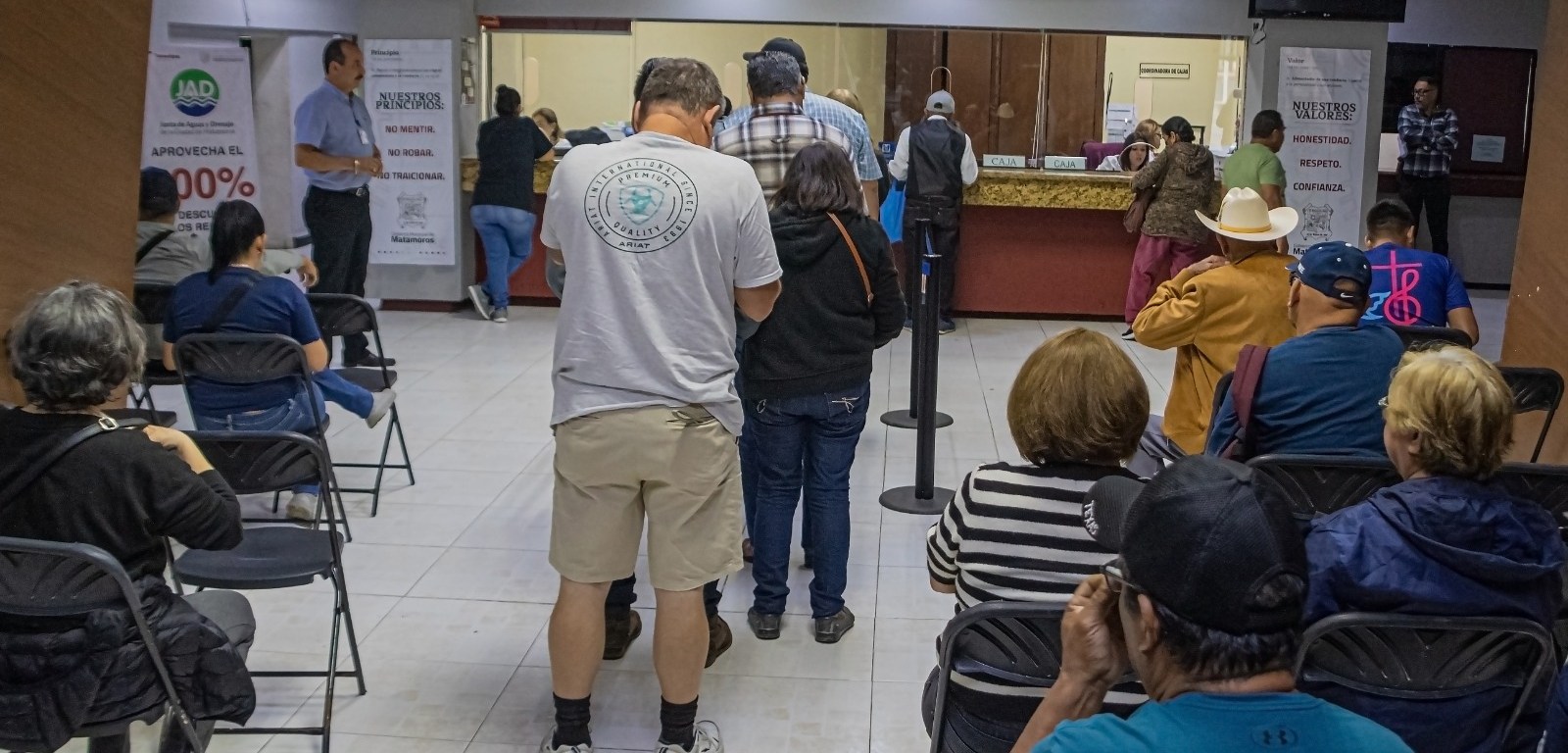 H. Matamoros, Tam. – Desde las primeras horas del día, contribuyentes cumplidos acudieron a las cajas de la Tesorería Municipal para realizar el pago de su impuesto predial, aprovechando el descuento del 15% vigente durante el mes de enero.