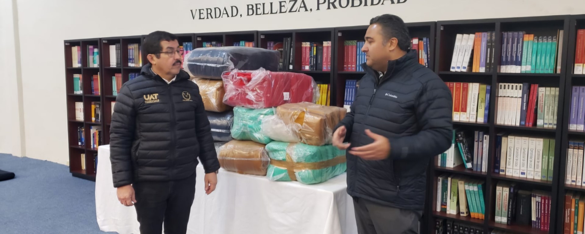 Acompañado por el director de la Facultad, René Adrián Salinas Salinas, el rector visitó el espacio habilitado como refugio en el auditorio del plantel, donde resaltó la colaboración de la Universidad con el gobierno estatal y municipal para servir a la sociedad no solo en lo académico, sino también en contingencias ambientales como las que se han presentado en esta temporada invernal.