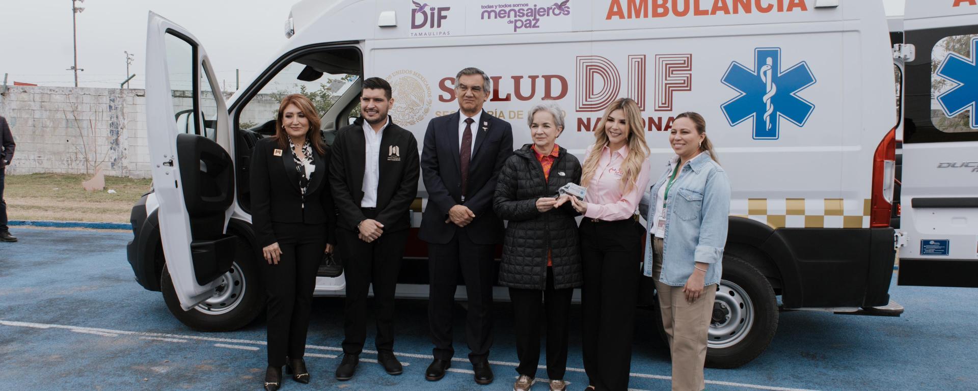 La ambulancia, se encuentra totalmente equipada con lo necesario para brindar atención médica oportuna, este beneficio es parte de un convenio que se firmó entre el DIF Nacional y el Gobierno del Estado a través del DIF de Tamaulipas, este se denominó como, “Círculos de Protección”.