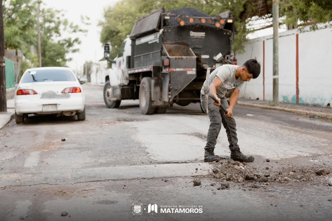 H. Matamoros, Tamaulipas.- Con el compromiso de ofrecer calles más funcionales y seguras para todas y todos, este día se llevan a cabo trabajos de rehabilitación y mantenimiento en distintos sectores del municipio.
