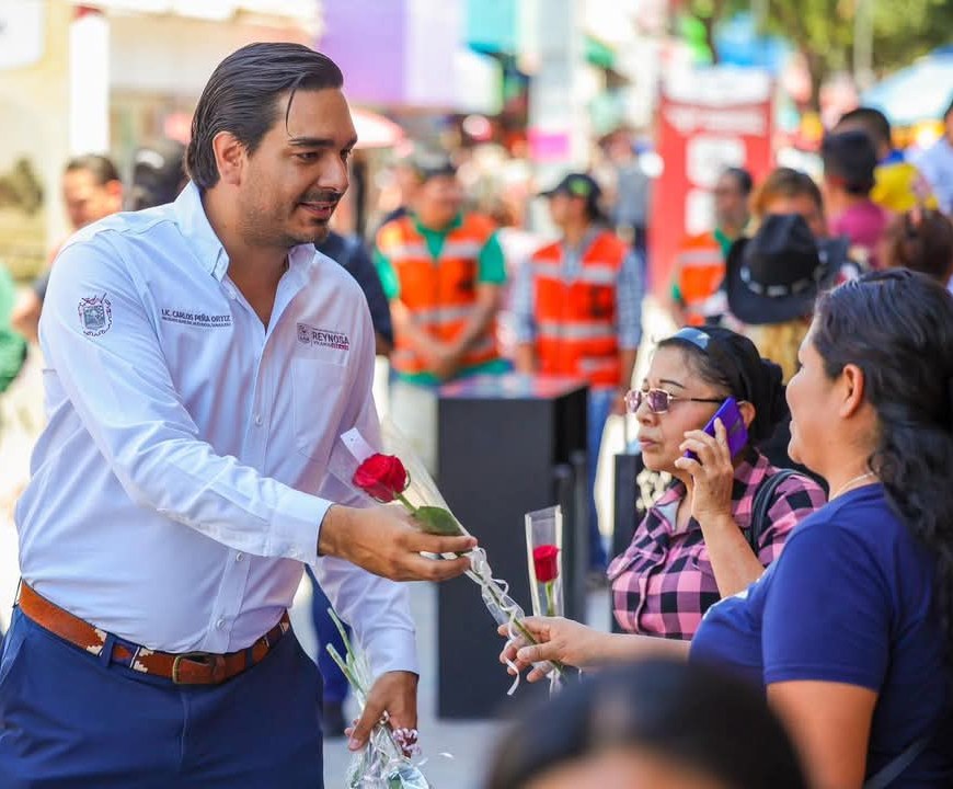 Con motivo del Día de las Madres, el Alcalde Carlos Peña Ortiz recorrió la calle peatonal de la Zona Centro para felicitar y homenajear a las madres de la ciudad. Como muestra simbólica de aprecio, entregó una flor a quienes encontró en su camino, reconociendo su papel esencial en la familia y en la sociedad. #GobiernoMunicipalDeReynosa Continúa leyendo Festeja Carlos Peña, alcalde de Reynosa a las Mamás