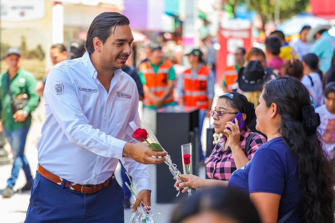 Con motivo del Día de las Madres, el Alcalde Carlos Peña Ortiz recorrió la calle peatonal de la Zona Centro para felicitar y homenajear a las madres de la ciudad. Como muestra simbólica de aprecio, entregó una flor a quienes encontró en su camino, reconociendo su papel esencial en la familia y en la sociedad.