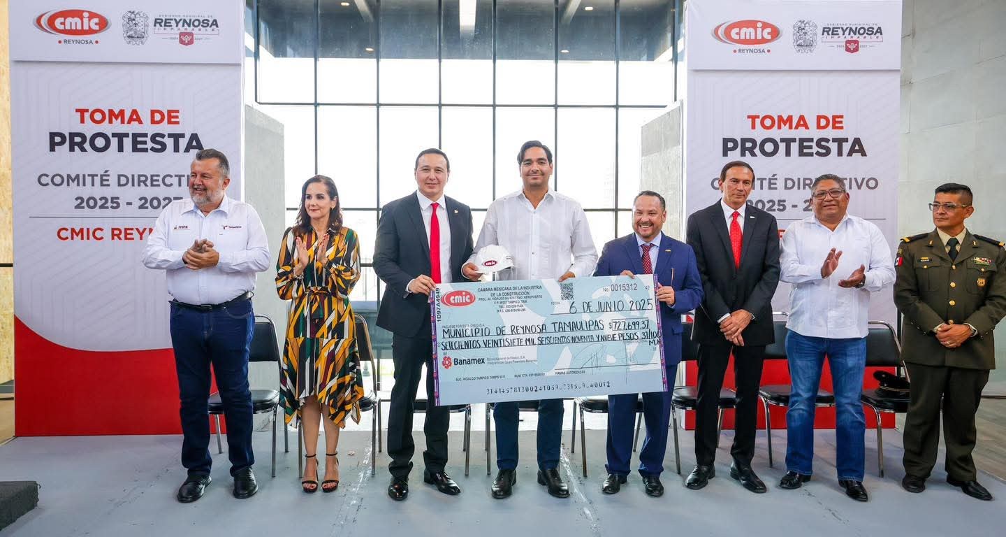 Durante la ceremonia, el Alcalde felicitó al presidente saliente de la CMIC, Guillermo Acebo Salman. Además, recibió a nombre del Municipio un cheque por $727,699.37, entregado por la Cámara como muestra de la colaboración y trabajo conjunto.