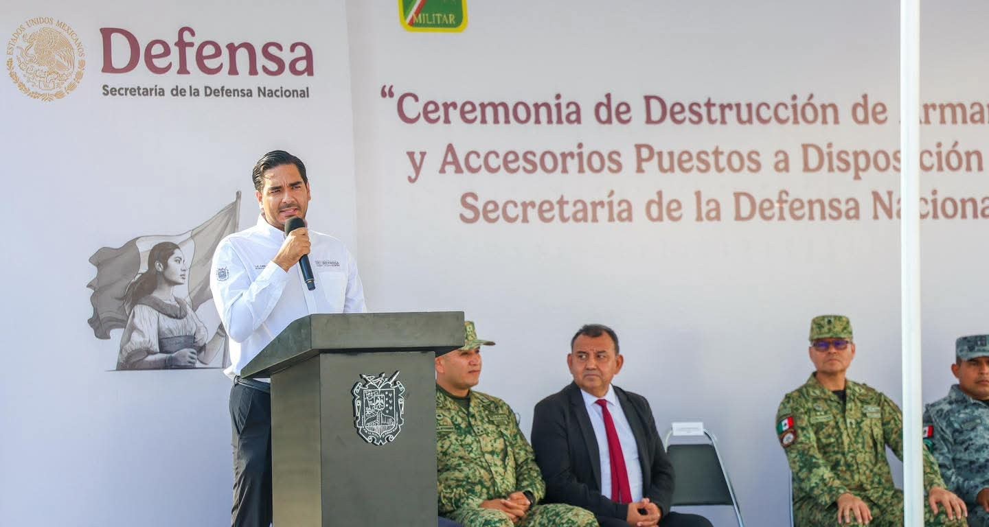 Posteriormente, acompañó a la Secretaría de la Defensa Nacional en la ceremonia simbólica de destrucción de material bélico, como parte de las acciones para fortalecer la paz y la seguridad en la región.