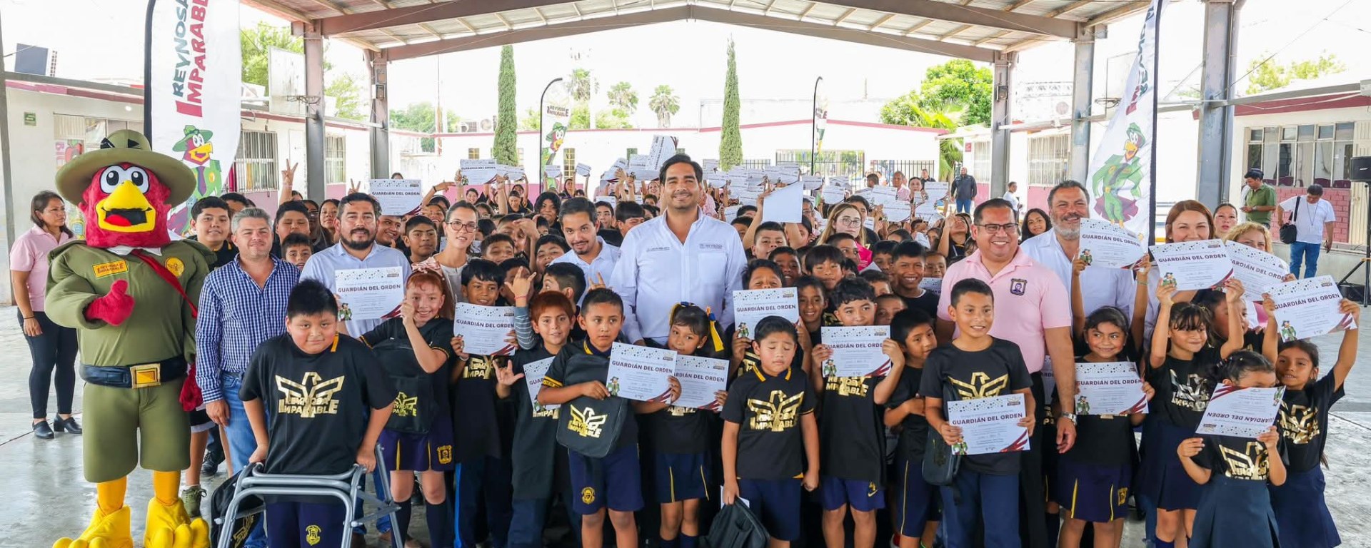 Durante su visita, entregó nombramientos a niñas y niños como Guardianes del Orden, reconociendo su compromiso con el cuidado y la protección de nuestro entorno, así como su papel en la construcción de una ciudad más limpia, responsable y sustentable.