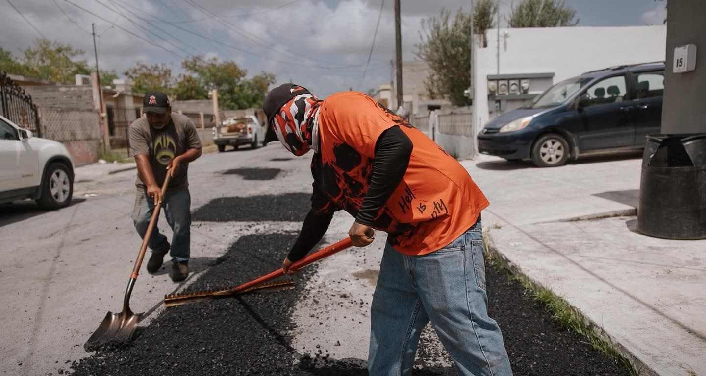 Cuadrillas de trabajo realizaron labores de rehabilitación de calles, nivelación y bacheo, dando respuesta directa a una de las principales demandas de la población: contar con vialidades dignas, seguras y transitables con las que Matamoros avanza.