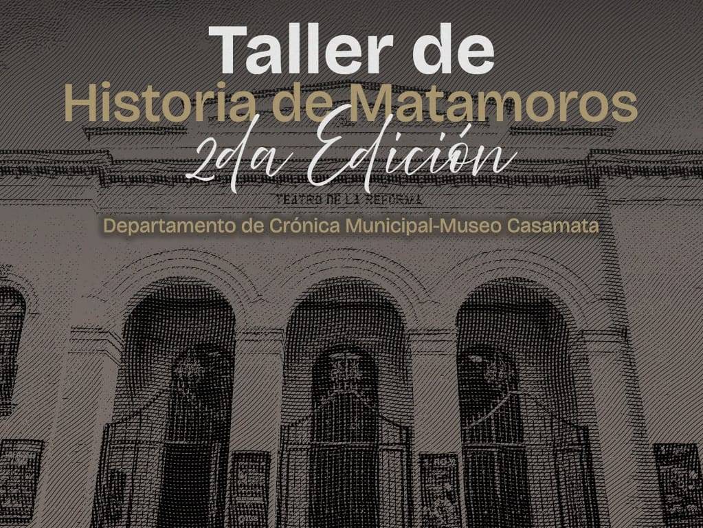 H. Matamoros, Tamaulipas.- Como parte de las acciones del Gobierno Municipal para preservar y promover el patrimonio histórico de la ciudad, hoy sábado 21 de junio se llevará a cabo una nueva sesión del Taller de Historia de Matamoros, en las instalaciones del Museo Casamata, en un horario de 10:00 de la mañana a las 12:00 del mediodía.