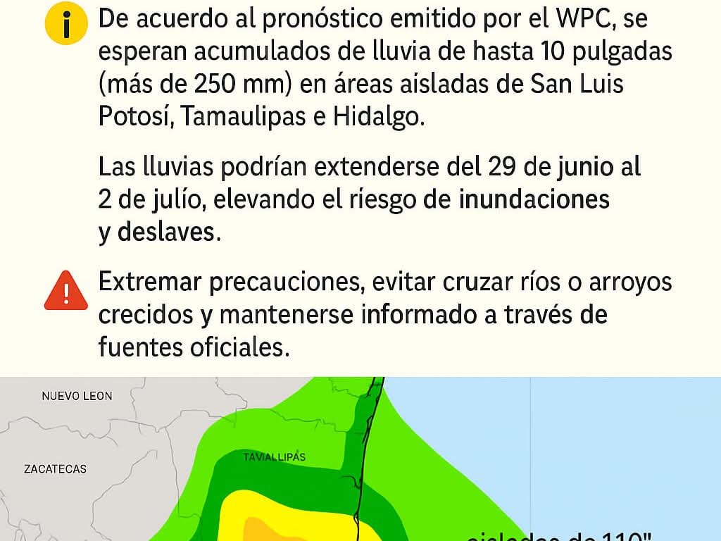 Independientemente del punto exacto de impacto, se prevé gran arrastre de humedad, con lluvias fuertes a intensas, ráfagas de viento entre los 40-60 km/h y riesgo de inundaciones repentinas.
