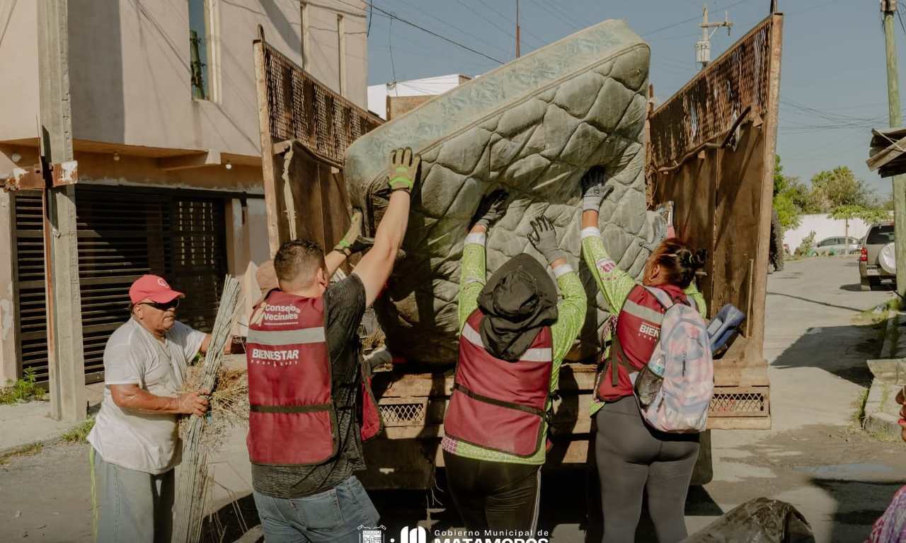 H. Matamoros, Tamaulipas.- El Gobierno Municipal que preside el alcalde, Beto Granados, a través de las jornadas permanentes de descacharrización, llevó a cabo una intensa jornada de limpieza en los fraccionamientos Hacienda del Puente y Santa Anita.