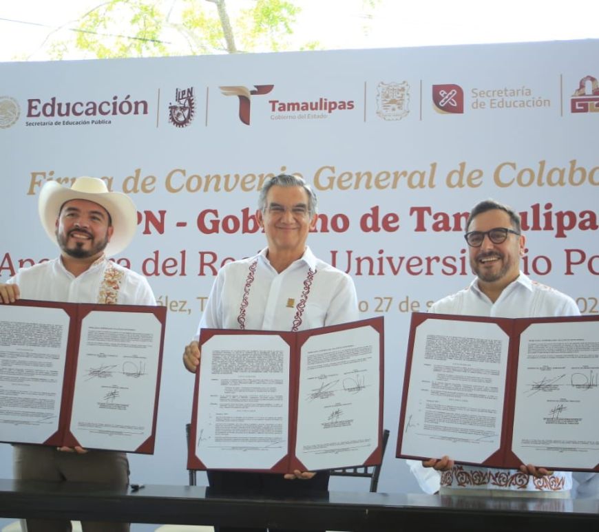 González, Tamaulipas. – El gobernador Américo Villarreal Anaya firmó el convenio de colaboración con el Instituto Politécnico Nacional e inauguró el Recinto Universitario Polivirtual, una nueva plataforma académica con la calidad y la excelencia educativa que distingue a esta prestigiada institución y que, por primera vez, se pone en marcha en todo el país. Tras dar la bienvenida al director del IPN, doctor Arturo Reyes … Continúa leyendo Tamaulipas y el IPN inauguran primer Recinto Universitario Polivirtual en México