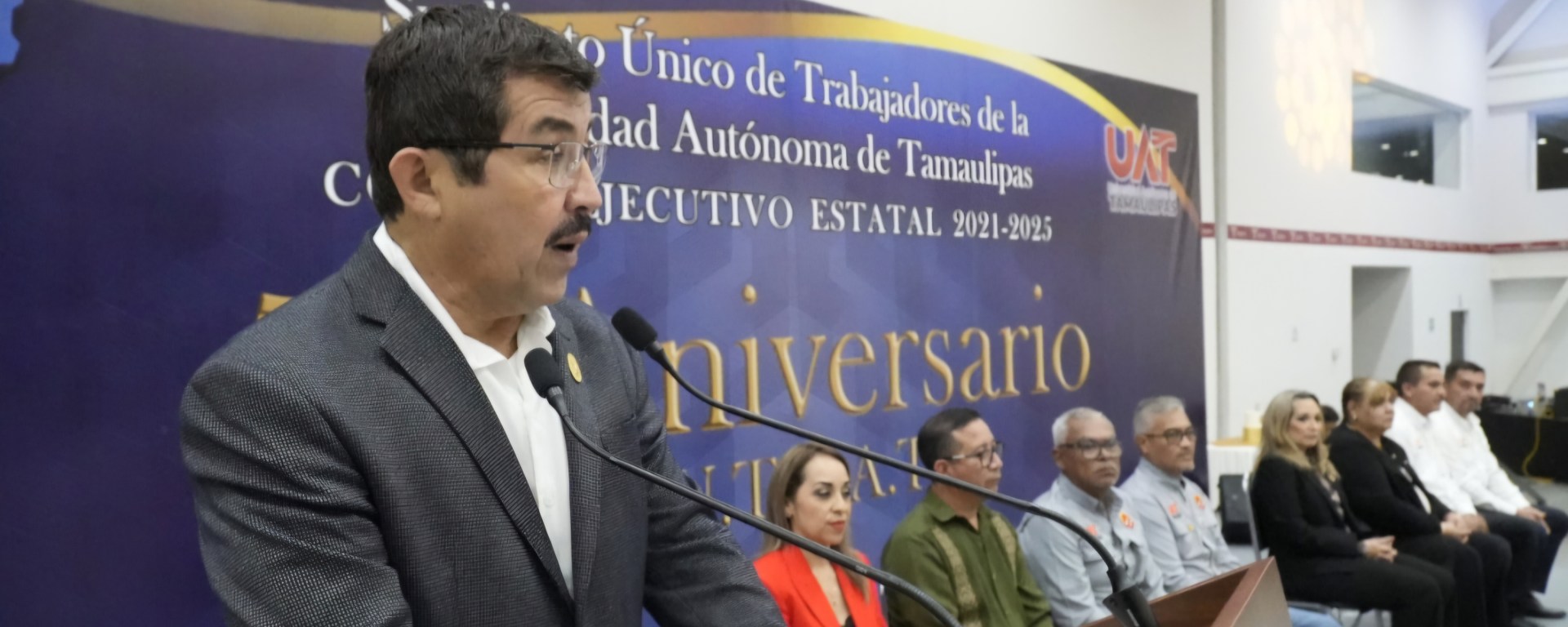 Al encabezar el acto por el 52 aniversario de la fundación del Sindicato Único de Trabajadores de la Universidad Autónoma de Tamaulipas (SUTUAT), el rector Dámaso Anaya Alvarado reafirmó el compromiso de fortalecer a la institución y los derechos del personal sindicalizado universitario.