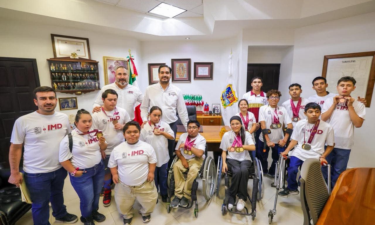 El alcalde de Reynosa, Carlos Peña Ortiz, felicitó y recibió a medallisras quienes acudieron a la Paralimpiada Naiconal CONADE 2025.