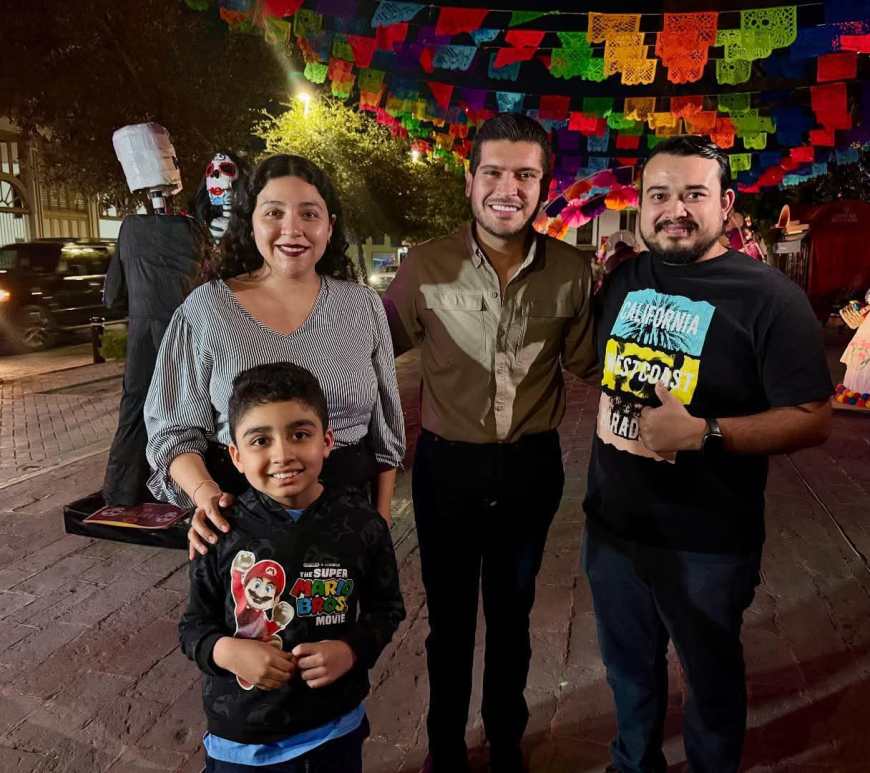 Alcalde Beto Granados recorrió la Plaza Principal para saludar a los visitantes que apreciaban la exhibición de catrinas y catrines