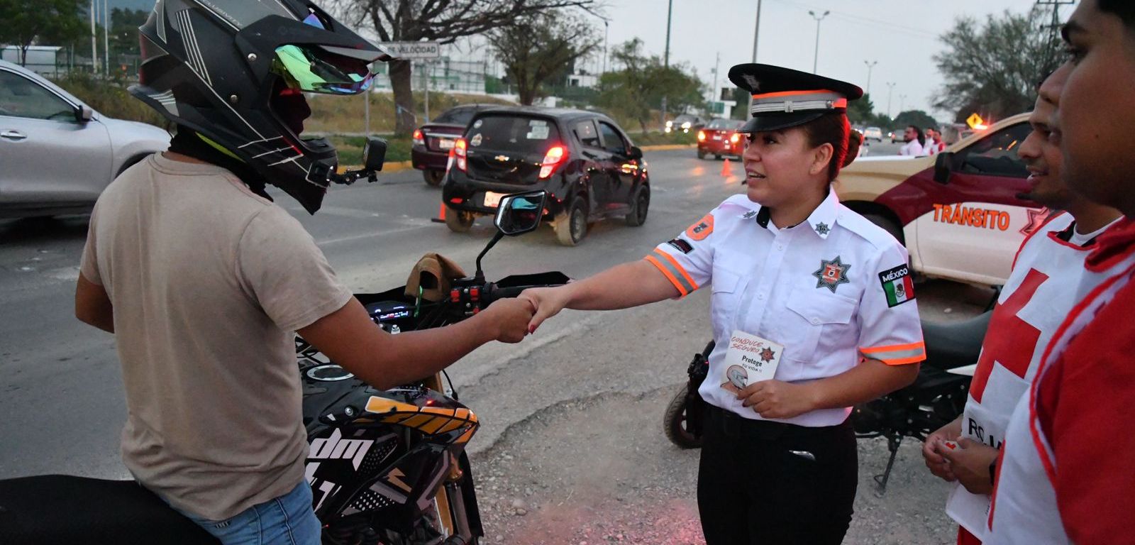 Ciudad Victoria, Tamaulipas. – En una acción coordinada con la Cruz Roja Tamaulipas y la Dirección de Tránsito y Vialidad de Ciudad Victoria, personal de la Dirección de Tránsito Estatal llevó a cabo un operativo preventivo enfocado a disminuir los accidentes viales entre motociclistas.