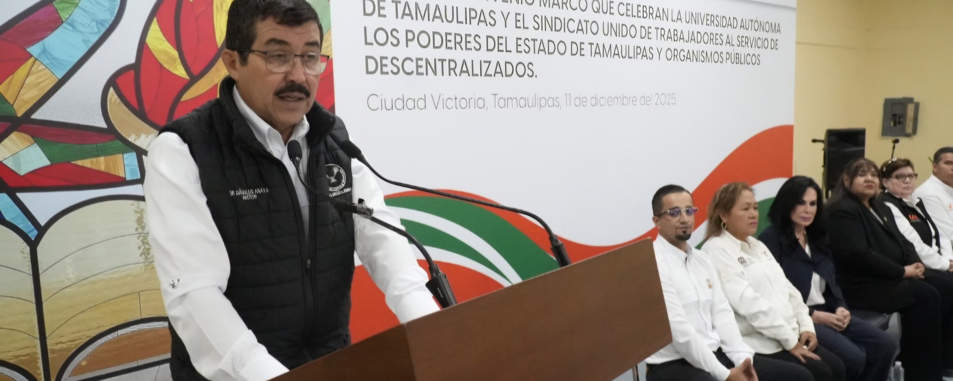 La Universidad Autónoma de Tamaulipas (UAT) y el Sindicato Único de Trabajadores al Servicio de los Poderes del Estado de Tamaulipas y Organismos Públicos Descentralizados (SUTSPET) formalizaron la firma de un Convenio Marco de Colaboración que establece un amplio esquema de becas, capacitación y apoyos educativos en beneficio de trabajadores sindicalizados y sus hijos.