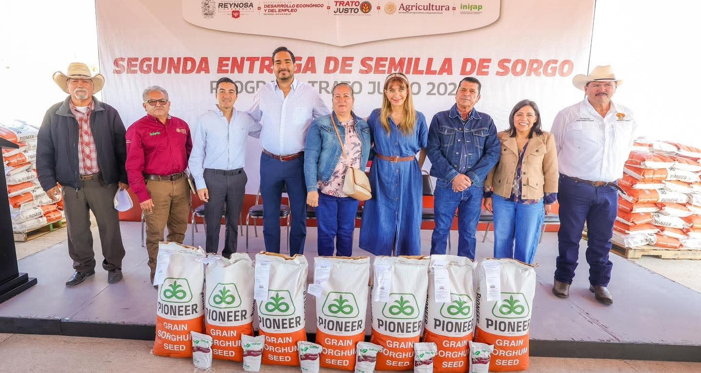 Con el objetivo de impulsar la productividad y el desarrollo del campo reynosense, el Alcalde Carlos Peña Ortiz realizó la entrega de 26 toneladas y 820 kilos de semilla de sorgo a 185 productores de más de 35 ejidos, como parte del Programa Tanto Justo.