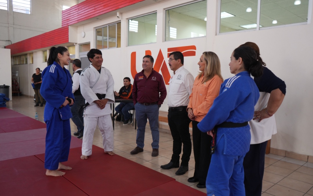 En la práctica participó el estudiante de la UAT, José Alfredo Quinta López, seleccionado nacional mexicano, que está en proceso para aspirar a los Juegos Olímpicos del 2028 bajo el mando de la sensei, Cecilia Martínez Aguilera.