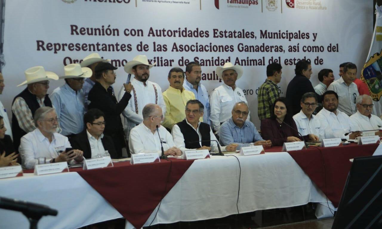 Durante una reunión con presidentas y presidentes municipales, titulares de asociaciones ganaderas, la dirigencia de la Unión Ganadera Regional de Tamaulipas y productores ganaderos, el gobernador del estado reiteró todo su apoyo a la estrategia y destacó la inmediata respuesta de la presidenta Claudia Sheinbaum para respaldar al sector ganadero de la entidad.