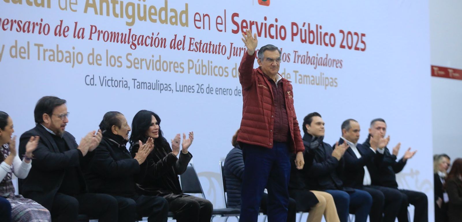 Durante la ceremonia en el Polyforum de esta capital, en la que se entregaron de manera simbólica 23 reconocimientos, medallas y estímulos económicos de un total de 1,453 a trabajadores que han cumplido entre 20 y 55 años de servicio en el Gobierno de Tamaulipas, el jefe del Ejecutivo estatal se refirió a la visita que realizó la presidenta Claudia Sheinbaum, quien trajo grandes beneficios y oportunidades para el desarrollo del estado y para seguir logrando el bienestar y la justicia social, así como coadyuvar al crecimiento y desarrollo de nuestra nación.
