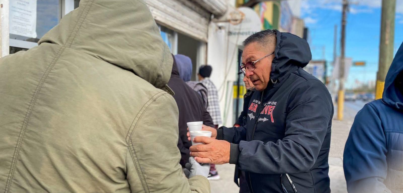 Matamoros, Tam.- Ante las bajas temperaturas registradas durante la mañana, el Gobierno de Beto Granados implementó acciones de atención directa para acompañar a la ciudadanía que acudió a los Bancos del Bienestar, ofreciendo café caliente y pan como un gesto de apoyo y cercanía mientras realizaban sus trámites.