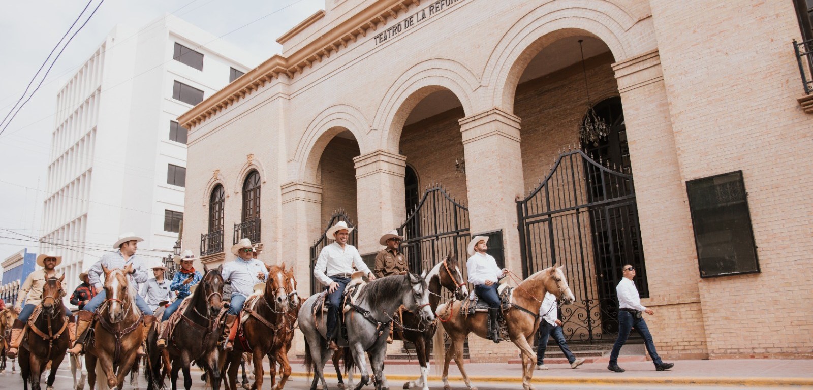 En el marco de las Fiestas Mexicanas, se realizó la tradicional cabalgata, recorriendo zonas emblemáticas de la ciudad: arrancando en la Puerta México, pasando por la plaza principal y culminando en el Lienzo Charro Villa de Matamoros.