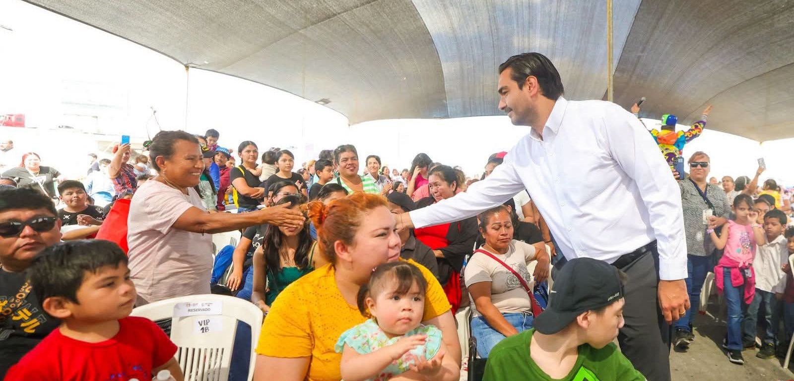 «Estamos muy muy felices de celebrar con cada uno de ustedes lo más sagrado que tenemos en la vida: nuestros hijos, nuestras hijas, nuestros papás, nuestras mamás, nuestras abuelitas. Lo que nos hace felices en la vida», dijo con mucho entusiasmo el Presidente Municipal, encontrando muchas sonrisas y aplausos en los asistentes.