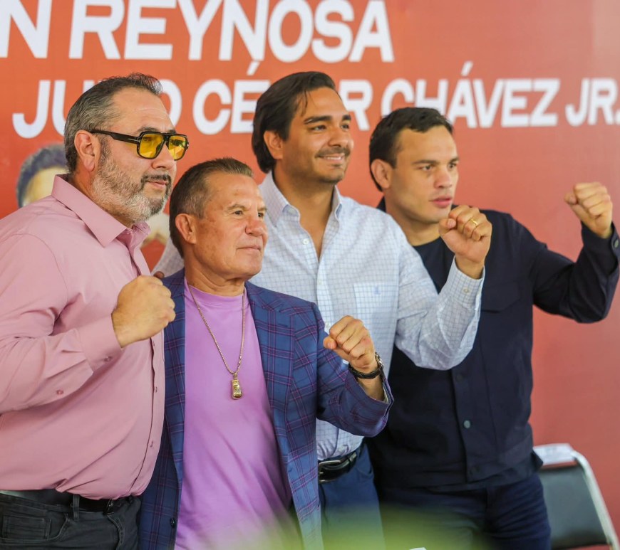 El boxeador entrenará cerca de 20 días en el Polideportivo Reynosa. El Alcalde Carlos Peña Ortiz dialogó con el los campeones mundiales Julio César Chávez y Julio César Chávez Jr., en un encuentro con periodistas locales, este martes 10 de marzo, anunciando la pelea que el próximo 25 de abril protagonizará en esta ciudad el joven boxeador, un evento que impulsa el Presidente del Consejo … Continúa leyendo Anunció Carlos Peña Ortiz a Julio César Chávez Jr. en cartelera internacional