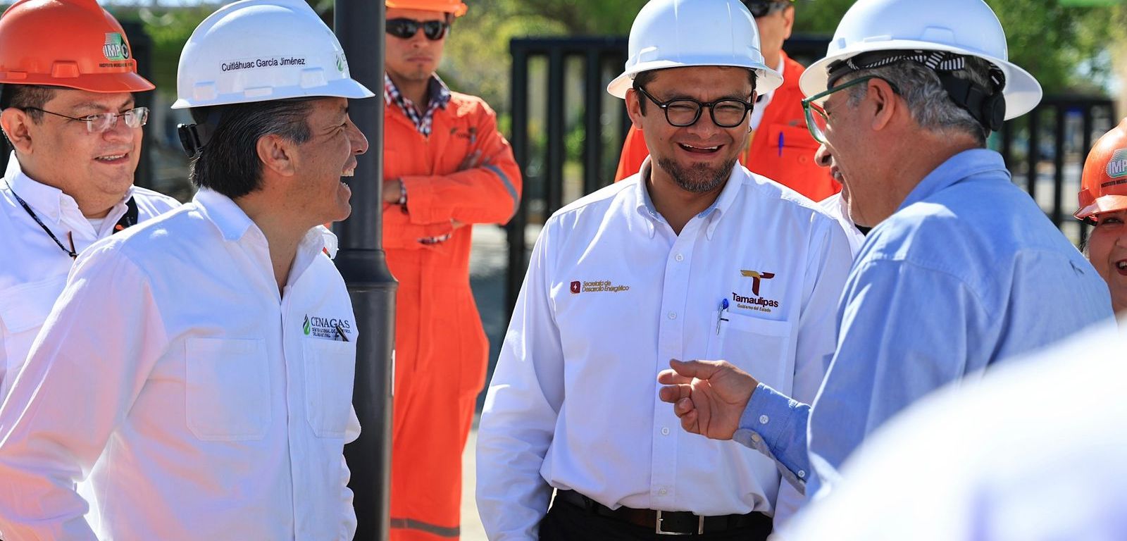 Así, el director general del CENAGAS, Cuitláhuac García Jiménez junto al secretario de Desarrollo Energético de Tamaulipas, Walter Julián Ángel Jiménez y Roberto Arias del CENAM, supervisaron el Complejo Procesador de Gas Burgos para avanzar en los trabajos de adecuación de la infraestructura.