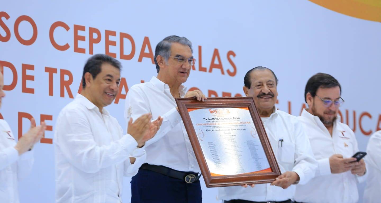 En el evento, el mandatario tamaulipeco recibió el reconocimiento de parte del Comité Directivo Seccional del SNTE por “impulsar políticas y acciones que fortalecen a los trabajadores de la Educación en Tamaulipas, reconociendo en los docentes el motor de transformación social y el futuro de nuestro Estado. Gracias por creer en la educación como el camino hacia un mejor Tamaulipas”.