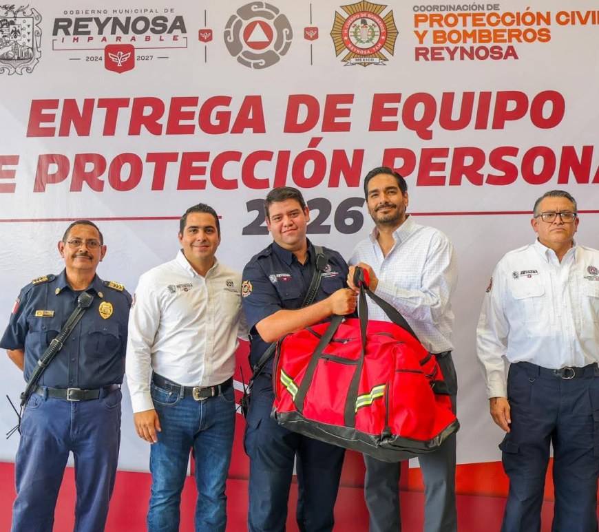 El alcalde Carlos Peña Ortiz realizó la entrega de equipo de protección personal para el personal del Heroico Cuerpo de Bomberos de Reynosa, fortaleciendo su labor diaria en favor de la ciudadanía. Con estas acciones se reconoce su compromiso, valentía y entrega, al ser quienes día a día velan por la seguridad y bienestar de las familias reynosenses. #GobiernoMunicipaldeReynosa Continúa leyendo Entrega Carlos Peña equipo para Bomberos