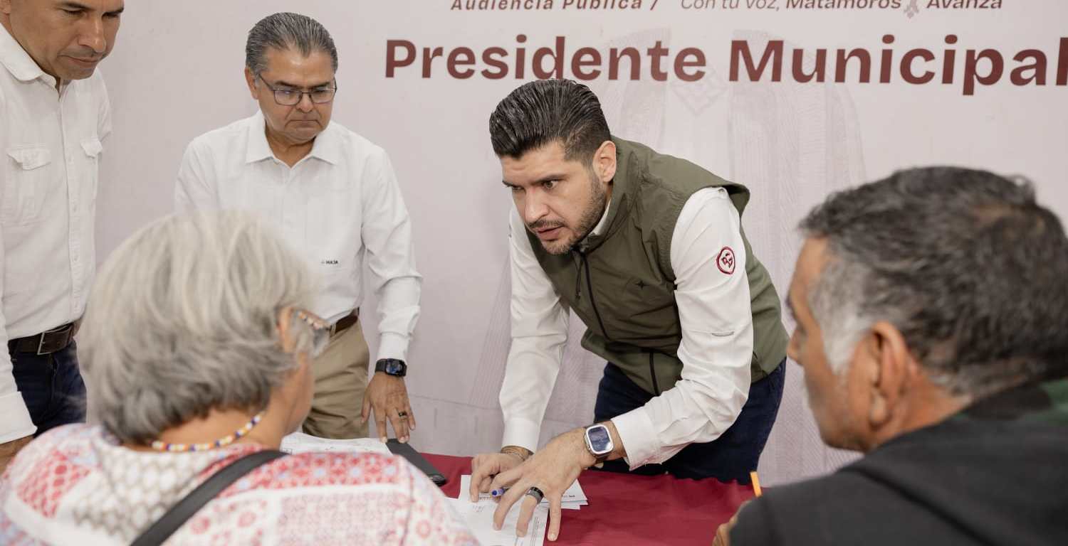 En el Centro de Convenciones “Mundo Nuevo”, el Presidente Municipal recibió a habitantes de distintas colonias de Matamoros, quienes pudieron expresar de viva voz sus inquietudes sobre obras públicas, servicios municipales y otras necesidades de sus sectores.