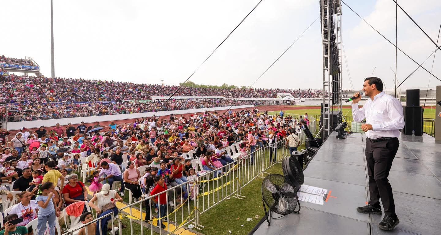 El alcalde Carlos Peña Ortiz presentó el show de Luli Pampín ante más de 15 mil personas en el Polideportivo, en una gran celebración por el Día del Niño 2026. En el evento también estuvieron presentes la Senadora Maki Ortiz y la Diputada Federal Casandra Priscila De los Santos Flores.