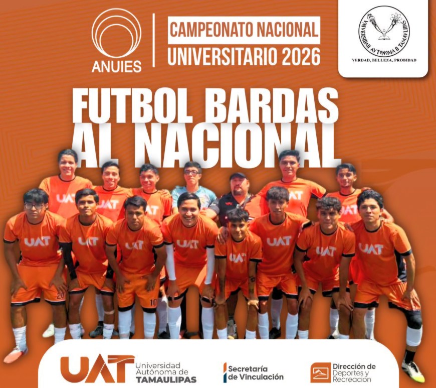 En una demostración de excelencia deportiva, el representativo varonil de futbol bardas de la Universidad Autónoma de Tamaulipas (UAT) se clasificó invicto al Campeonato Nacional Universitario ANUIES 2026.Tras una sobresaliente actuación en la fase regional, celebrada en la Universidad Autónoma de Nuevo León (UANL), el conjunto dirigido por Luis Ángel Aguilar Lugo se posicionó en la cima de la competencia.Con un récord de dos victorias … Continúa leyendo La UAT avanza invicta al nacional de futbol bardas ANUIES 2026